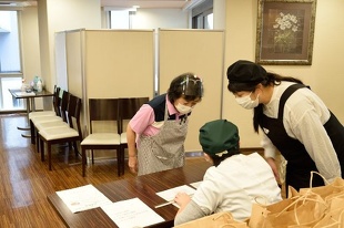 施設ではそれらの宴会の補助をおこなっていましたが、ずっと開催していなかったので、毎日ふれあいの里とばたのご利用者のために一生懸命頑張って働いてくださるスタッフに何か心ばかりのプレゼントをしたいということになり、今は閉鎖中のカフェラポールさんにお願いしてクッキーの詰め合わせを全スタッフへプレゼントすることになりました。